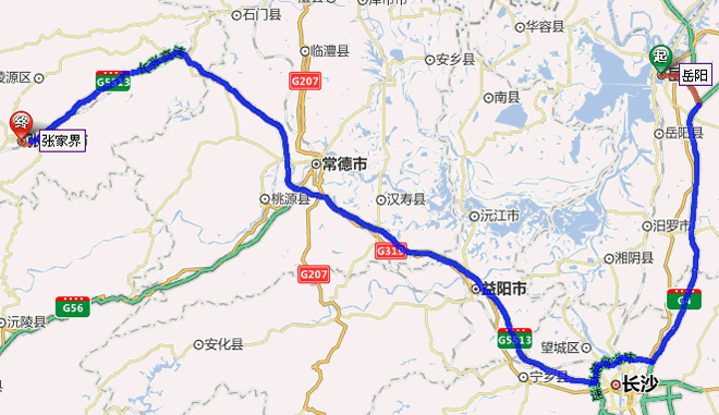 岳陽去張家界自駕車線路圖(全程部分高速):