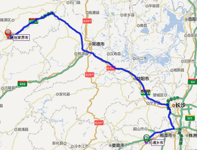 湘鄉(xiāng)市到張家界自駕車(chē)路線圖
